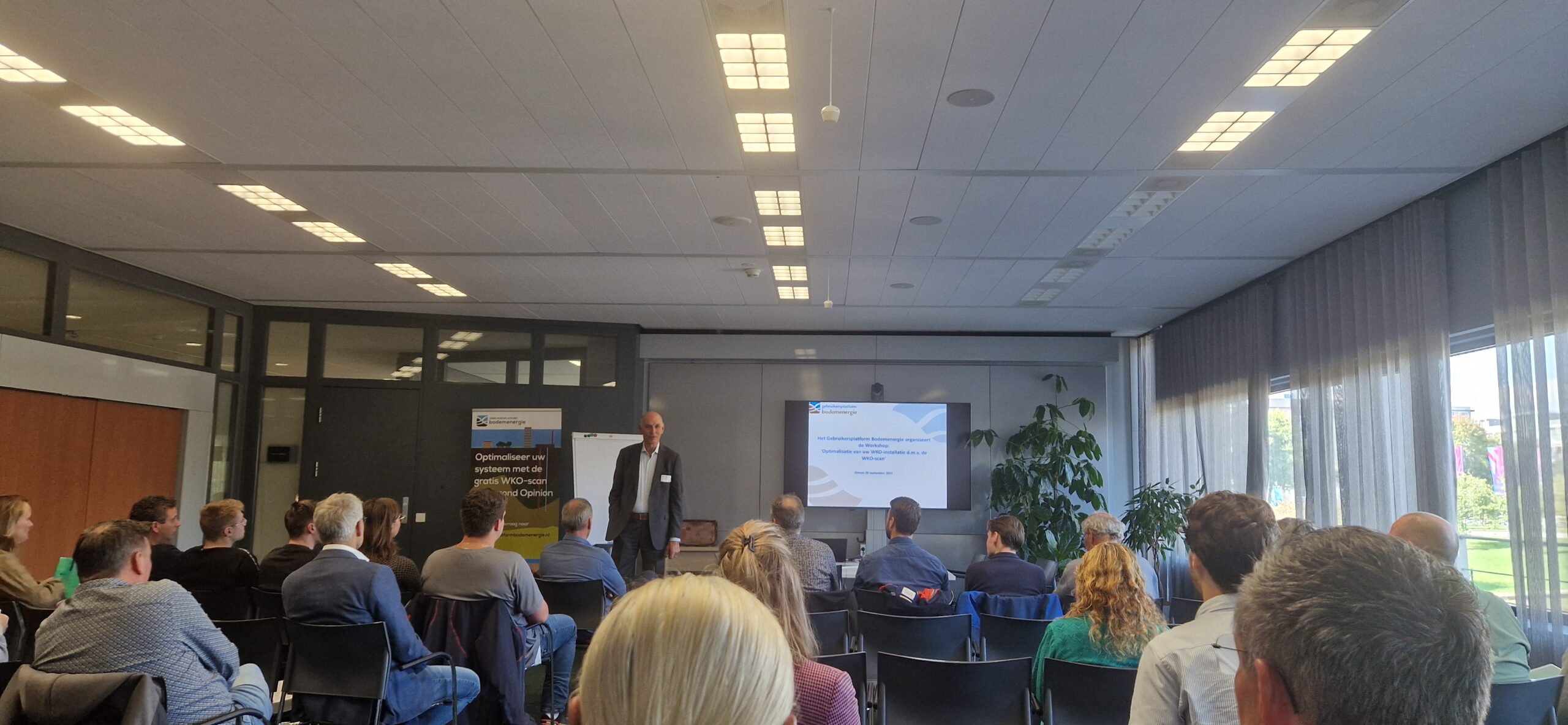 Diverse deskundigen deelden tijdens het goedgevulde programma hun ervaringen met zowel de uitvoerende als opdracht gevende kant van de WKO-scan. Daarbij kwamen de resultaten van 18 scans aan bod. De interactieve middag stond in het teken van diverse discussies waarvoor de experts gespreksonderwerpen aandroegen. Voor het zover was, opende dagvoorzitter Henk van Zoelen de workshop met een introductie over de werkzaamheden van het Gebruikersplatform Bodemenergie, de ondersteuning die zij biedt aan de arbeidsmarkt, de voordelen van bodemenergie en de cursus speciaal ontwikkeld voor gebruikers van bodemenergiesystemen.